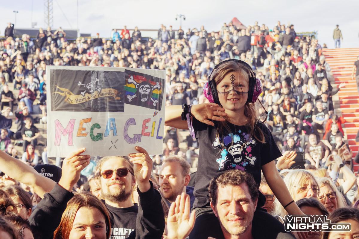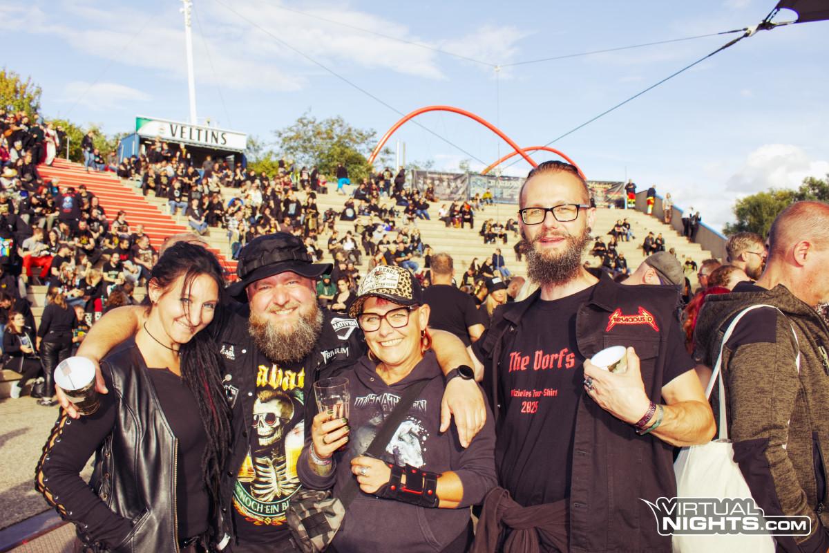 Am 13. September 2025 gehörte das Amphitheater Gelsenkirchen dem Folk: Vor allem Schandmaul setzte am späten Abend das Ausrufezeichen – ein souveräner, mitreißender Headliner-Auftritt, der Refrains zum Mitsingen, Dudelsack-Drive und Gänsehaut-Momente bündelte und das Publikum noch einmal komplett auf Temperatur brachte. Zuvor hatten Korpiklaani, dArtagnan, Mr. Hurley & Die Pulveraffen, Storm Seeker, Manntra und Kupfergold das Feld perfekt bestellt – stilistisch breit, aber durchgängig energiegeladen und publikumsnah. Indoor-Komfort brauchte hier niemand: Terrassen, Blick auf die Bühne und eine Crowd, die vom ersten Ton an dabei war. Ein Fest für Folk-Herzen – und ein Abend, der gezeigt hat, warum dieses Format im Revier genau am richtigen Ort ist.